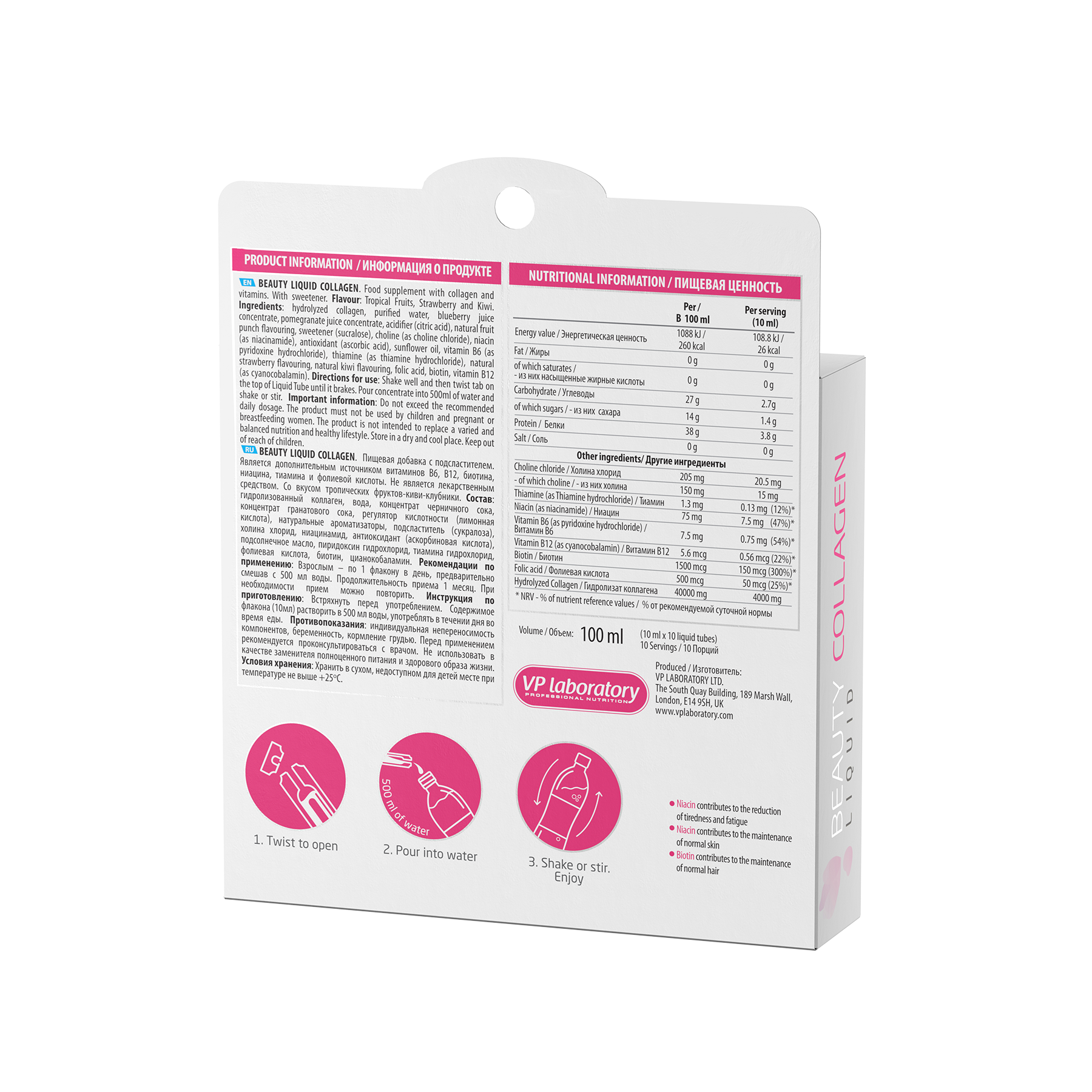 Beauty Liquid Collagen is a concentrated drink mix that contains a complex of type I & III hydrolyzed collagen peptides, biotin, niacin, folic acid, and other B group vitamins. These are key components to a healthy, youthful-looking skin & hair and reduction of tiredness & fatigue. All ingredients carry out separate, but complementary roles in maintaining the health of the skin from the inside out.